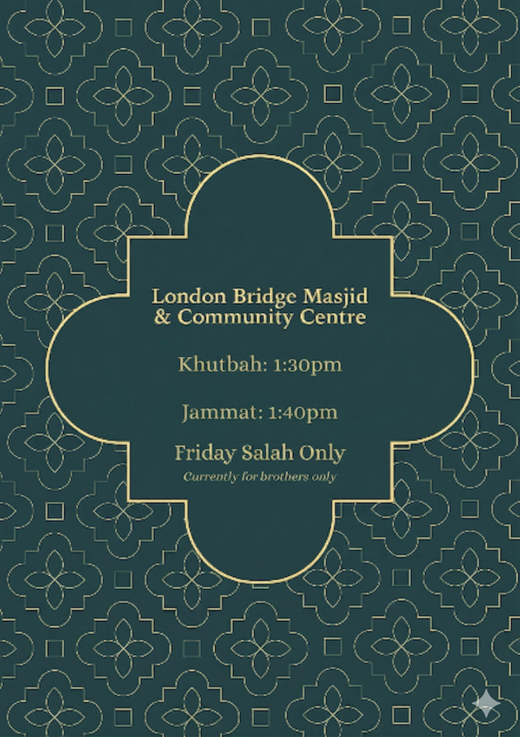 A group of local Muslims looking to establish prayer facilities for Friday prayers for those working and living in and around London Bridge, Borough and Bankside, the City of London, Southbank, the Northbank and the surrounding areas.